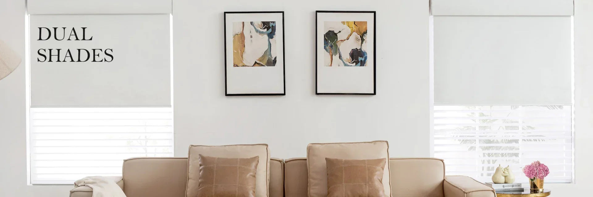 Combine 2 roller shades in 1. Designed combination of blackout fabric and light filtering, solar or sheer fabric. Realize flexible switch between maximum light blockage and let light coming in or keep view outside visible.