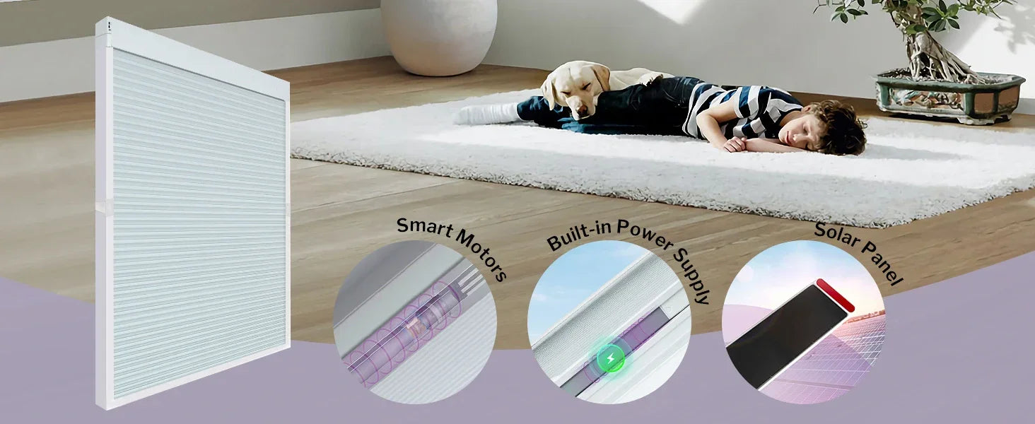 【RELIABLE PATENTED DESIGN】: Upgraded smart cellular shades feature high-quality aluminum side rails, designed for non-vertical windows that require secure, sag-free coverage. Offer a sleek, modern look while being easy to install and operate.